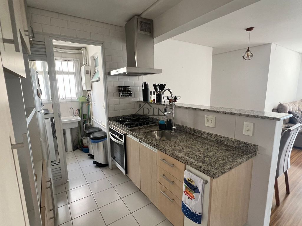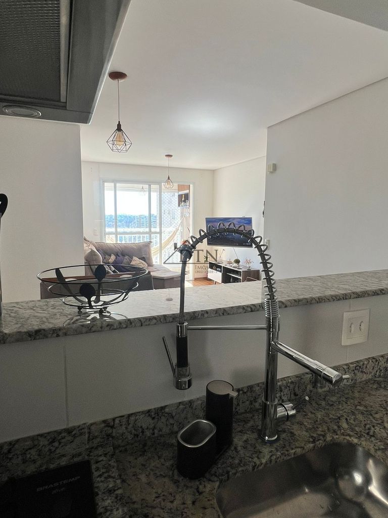 A cozinha americana, totalmente funcional, conta com armários planejados, cooktop, forno, exaustor e aquecimento a gás, trazendo mais conforto para o dia a dia.