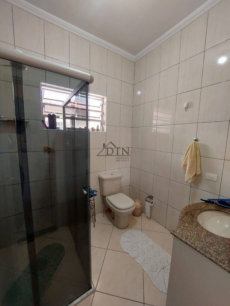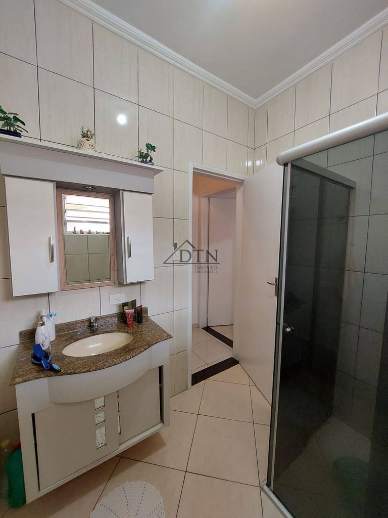 São 2 dormitórios, um deles com ar condicionado, sala de visitas espaçosa, cozinha com armários, 1 banheiro social interno com gabinete e box de vidro, área de serviço, corredor lateral todo revestido, área gourmet com banheiro. Casa bem arejada e iluminada.