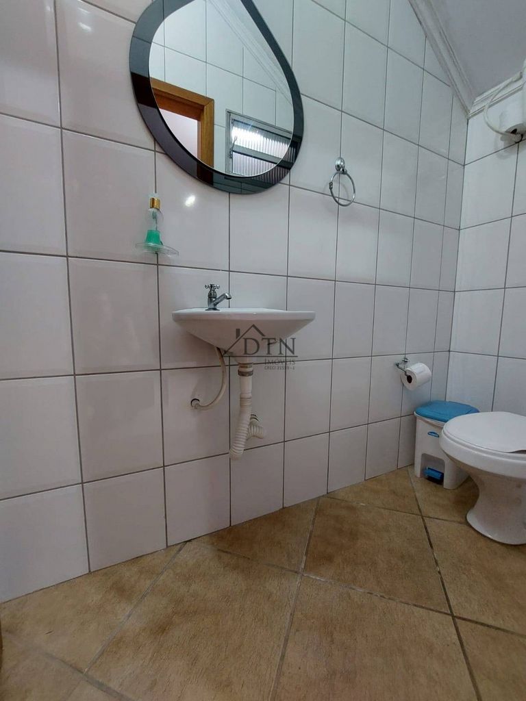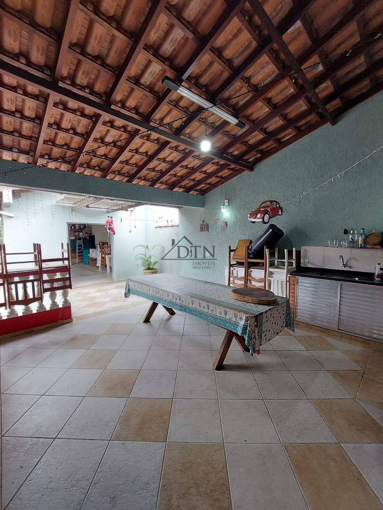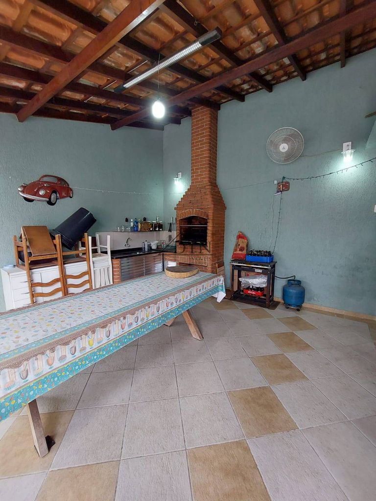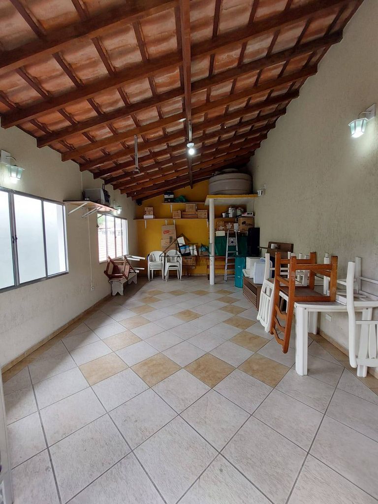 No piso superior a casa conta com uma espaçosa área gourmet com churrasqueira e salão de festas.