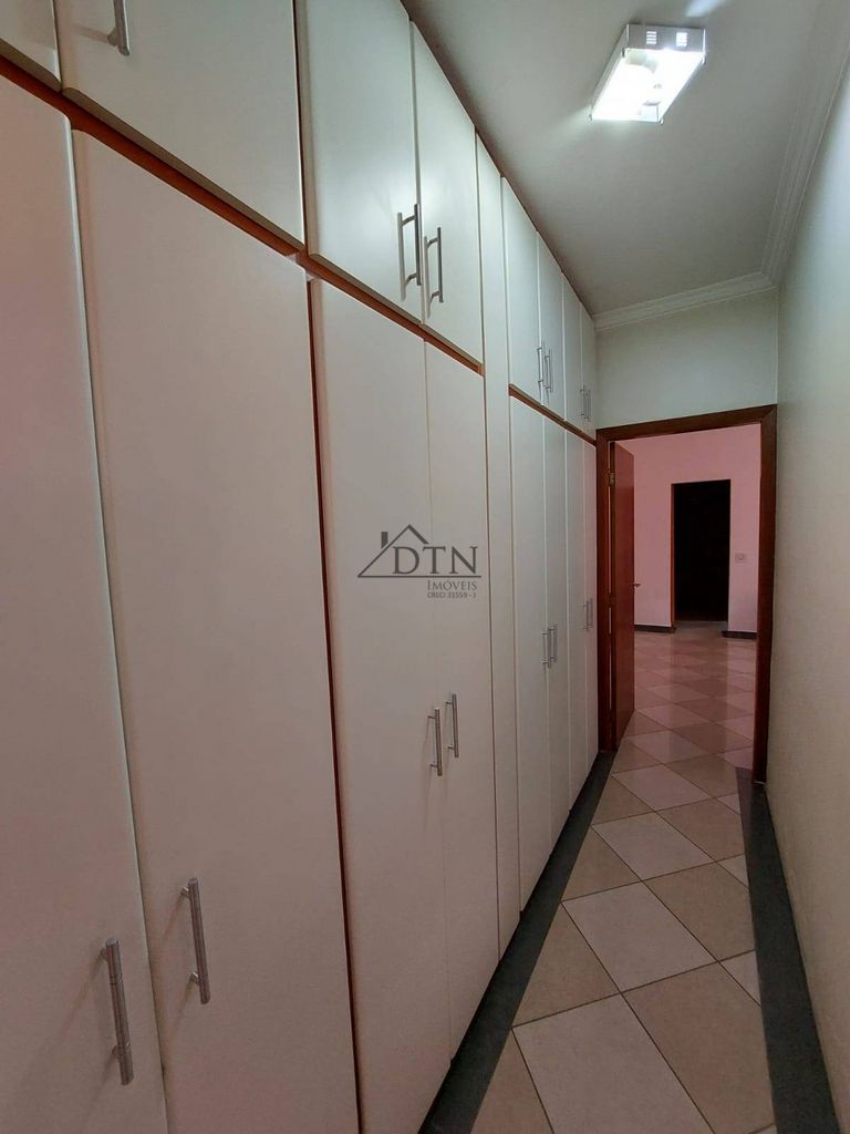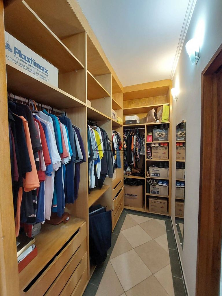No térreo temos garagem com portão automático para 3 carros, corredor lateral, sala espaçosa para 2 ambientes, 3 dormitórios sendo 1 suíte ampla com closet, copa, cozinha americana planejada, corredor com armários embutidos, lavanderia, depósito (pode ser usado para outros fins como espaço de trabalho, construção de um 4º dormitório etc) e lavabo.