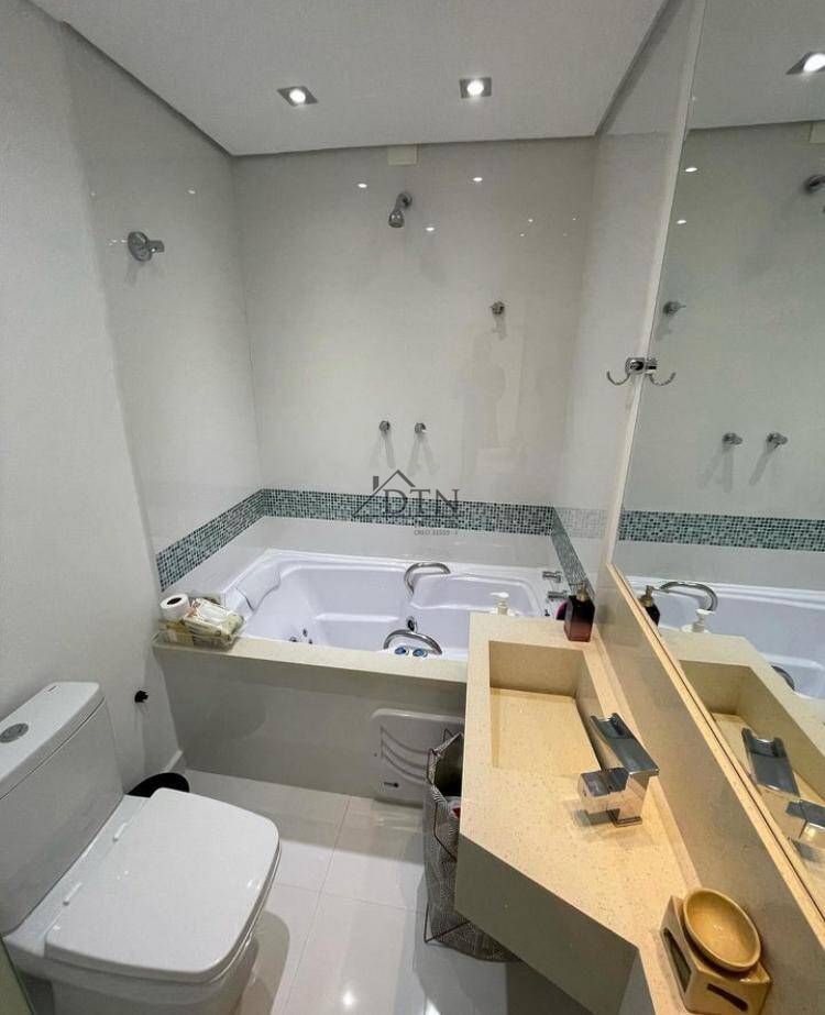 O imóvel possuí móveis planejados, ar condicionado, aquecimento a gás nas pias e chuveiros, banheira com hidromassagem, churrasqueira, porcelanato.
