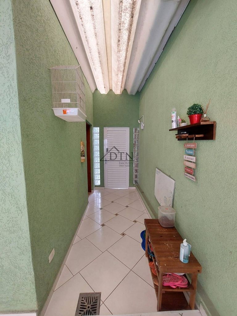 Área de serviço com armários e churrasqueira, corredor lateral, garagem para 2 carros (com folga), portão automático.